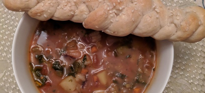 We made minestrone soup for dinner last week. To go with it, I made some breadsticks. I used the recipe I normally use for a soft white sandwich bread, but increased it by 1/3, and used a third of it for the breadsticks, and baked the rest in a bread pan to make a loaf … Continue reading Wednesday Baking: Breadsticks